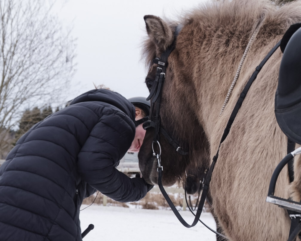 Vi kan pyssla, mysa, gå en promenad eller träna hästen från marken genom lek-, balans- och kommunikationsövningar.
